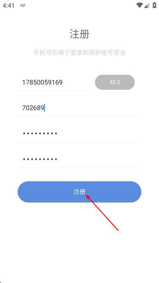 3、确认信息填写无误后,点击注册,完成注册操作。