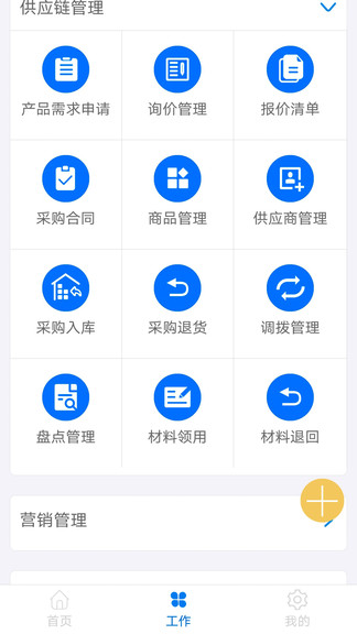 4、采购报价单、采购订单、采购入库、退货单、采购系统报表。