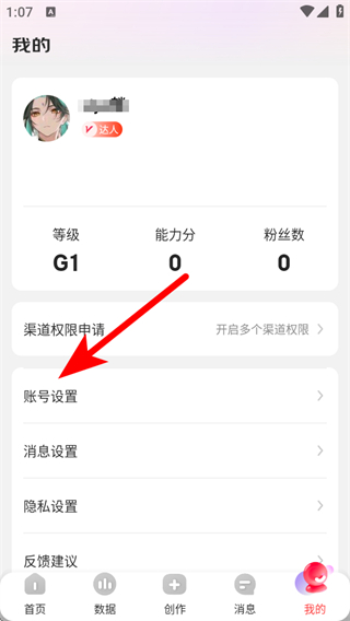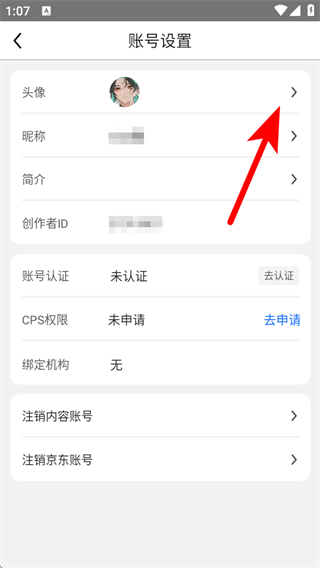 1、打开京东内容助手APP,进入我的页面,点击账号设置。