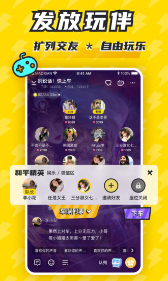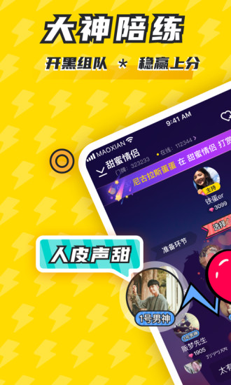 轻松创建专属聊天室拒绝尴尬,不要严肃,想聊什么聊什么不管是开黑,交友还是pia戏听歌,多种主题各种玩法,连麦连不停游戏累了不要紧,毛线多人连麦互动更加轻松愉快。语音吹牛、你说我猜、歌唱接龙、情感FM……多人语音频道24小时在线互动,快速破冰交友,还有酷炫的礼物送给TA。