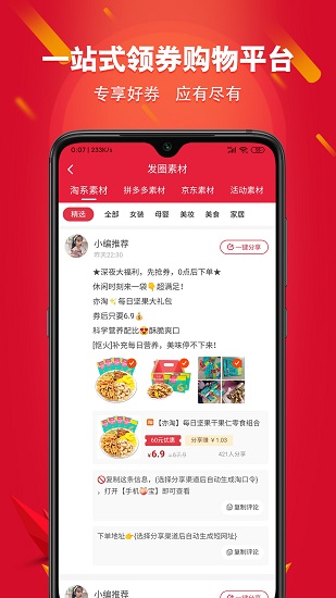 搜索券是一款综合性社交电商导购app,平台整合了主流知名电商平台产品和上千家知名品牌的商品,为用户提供全网全方面的购物体验,为您省钱。