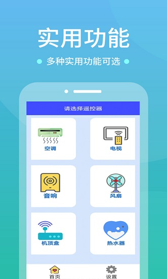 爱家手机智能遥控器,支持多种可遥控电器设备,完美用手机取代各个家电的遥控器,操作遥控更个性化,远程控制简单兼容性强,再也不用担心找不到遥控器啦