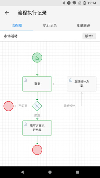 4、流程执行记录,分别查看流程图和执行记录,掌握未来办公方向;