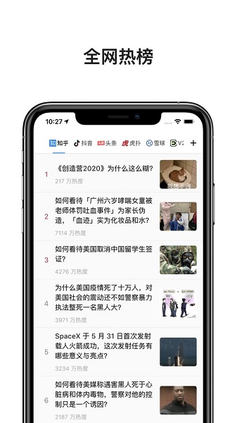 支持知乎、抖音、微博、虎嗅、v2ex、哔哩哔哩、虎扑、雪球、网易、36氪、果壳、百度、今日头条、开源中国、豆瓣、360、起点、什么值得买、淘宝众筹、3dm、游民星空、懂球帝、站酷等热门站点的最新榜单,并且可以根据个人喜好进行自定义订阅,只看自己想看的内容!在IOS14以上系统还支持将热榜添加为桌面小组件,更加方便阅读!