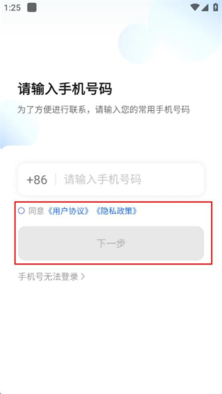 2、勾选同意用户协议和隐私政策,点击下一步按钮进入安全验证环节。