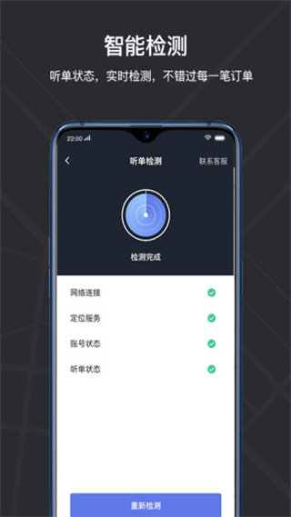 智能检测,关注听单状态,实时检测,不错过每笔订单;