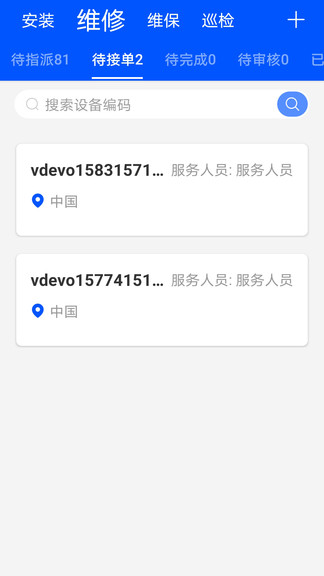 设备搜索,只需要输入设备编码即可,编码是设备标识,利于设备查找;