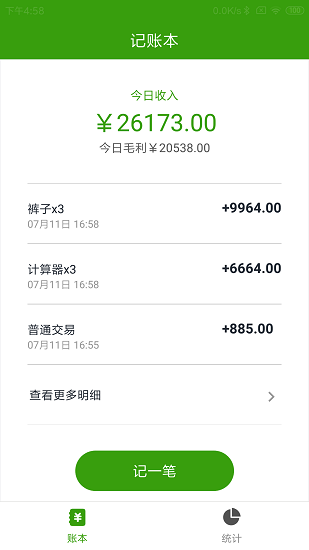 支持统计功能,支持查看收入和利润的每日对比和月度对比