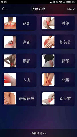 熊掌技师最新版能够让用户连接上设备后方便的操控设备的动作。用户连接上设备后可以自己选择按摩的部位以及按摩手法,给自己来一次舒爽的按摩去掉上班后的疲劳,同时也能够通过软件了解到设备的电量等相关信息,便于更好地管理。