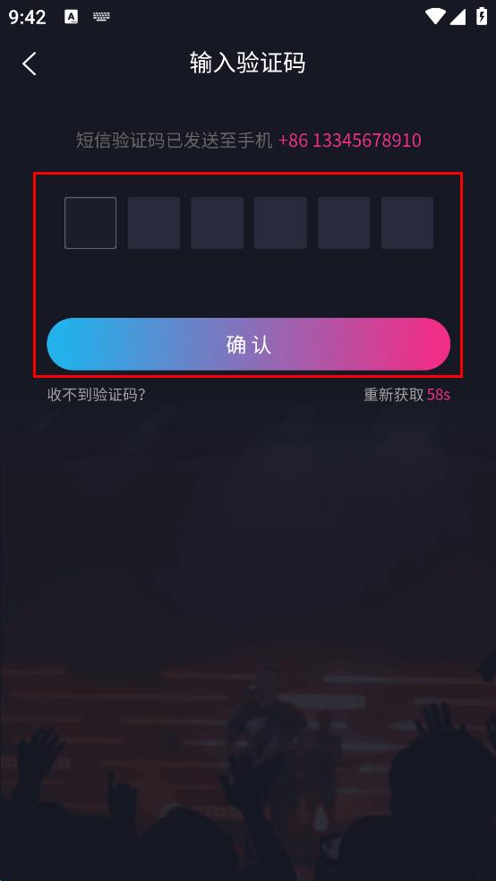 4、进入输入验证码页面,输入收到的验证码,点击确认完成登录。