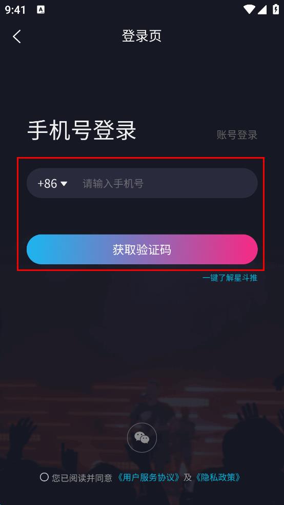 3、输入手机号,点击获取验证码,勾选已阅读并同意用户服务协议及隐私政策。