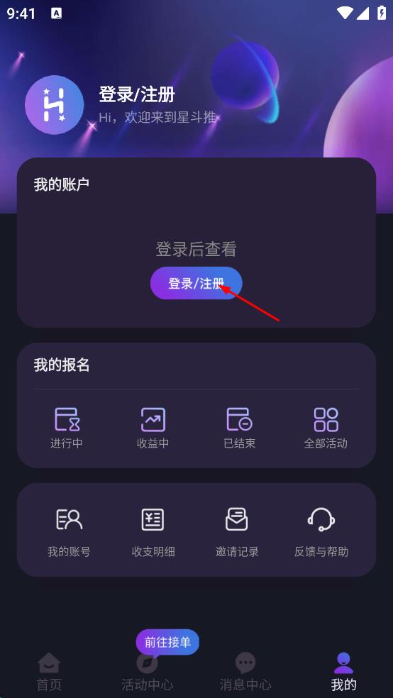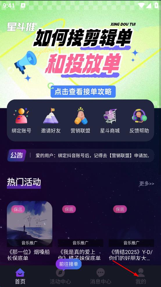 1、打开星斗推首页,点击右下角我的。