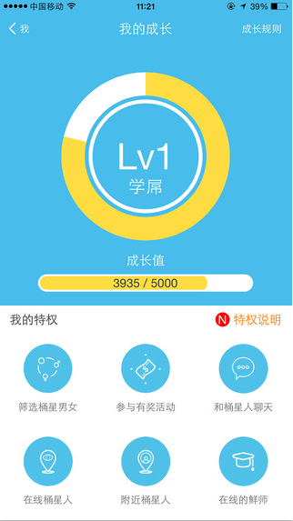 4.现在可以通过“我的成长”关注自身的成长等级信息。