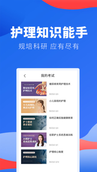 6、丰富的护理知识可以在线学习,学完之后可以在线报名考试;