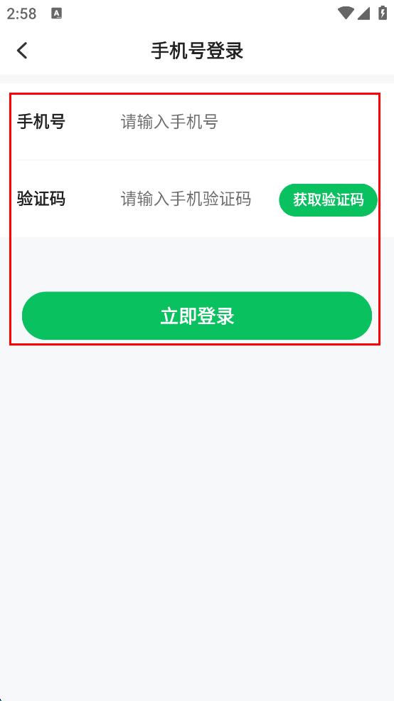 4、在手机号登录页面,先在“手机号”输入框中输入手机号码,然后点击“获取验证码”,将收到的验证码输入到“验证码”输入框中,最后点击“立即登录”按钮,完成账号登录流程。