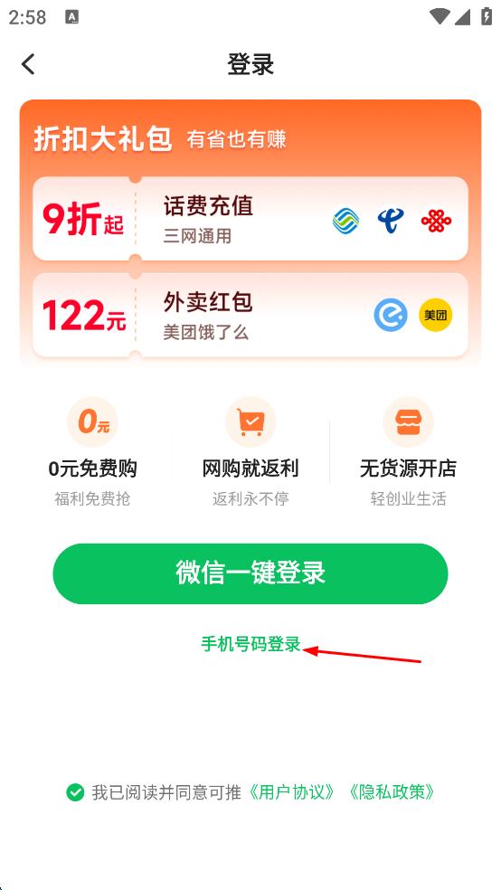 3、在登录界面,找到“手机号码登录”选项并点击,进入手机号登录页面。