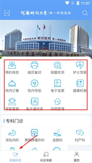 2、在线问诊功能便捷,用户可通过“在线问诊”板块与医生沟通,在“问诊消息”中查看消息列表,及时获取问诊相关信息。