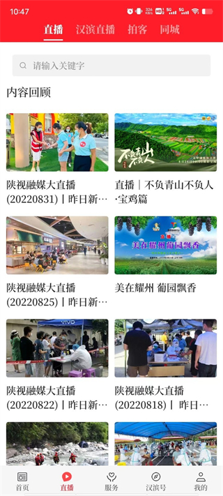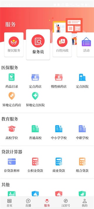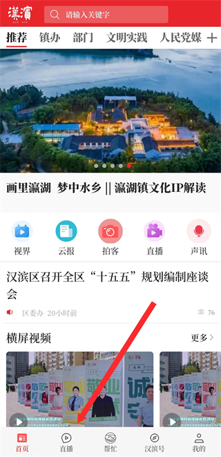 1、打开爱汉滨APP首页,点击底部直播,进入直播板块页面。