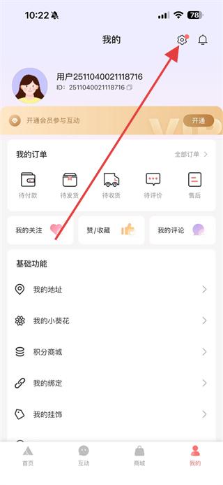 2、在个人页面中点击右上角设置图标,进入设置页面。