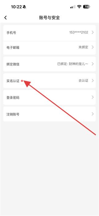 4、在账号与安全页面点击实名认证,进入实名认证页面后,按照提示修改身份证号信息即可。