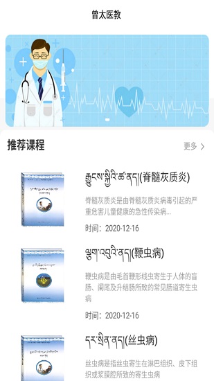 曾太医教APP提供了藏文版传染病、寄生虫病、四季常见病、中草药种植技术和藏医药练习题及在线技能训练。软件收录了近几年真题,更有章节练习、模拟试题、每日一练,让您做题做到手软。所有网课支持离线观看,没有网也可以学习,让学习随时随地可以实现,不再受时间空间的限制。