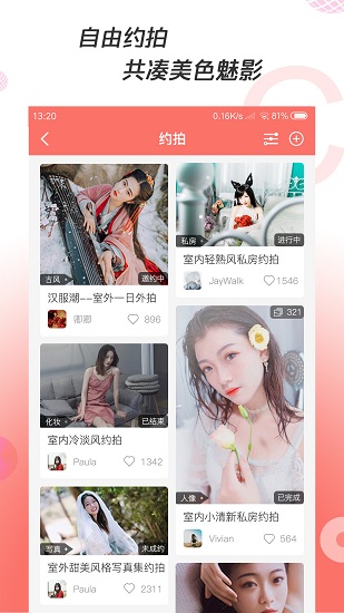 能够 轻轻松松寻找相对的模特网红,让约拍更为便捷轻轻松松;