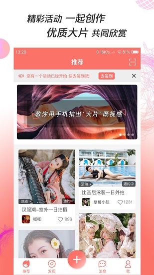 经常性出示服务平台主题活动,还能与别的摄影爱好者互动交流闲聊;