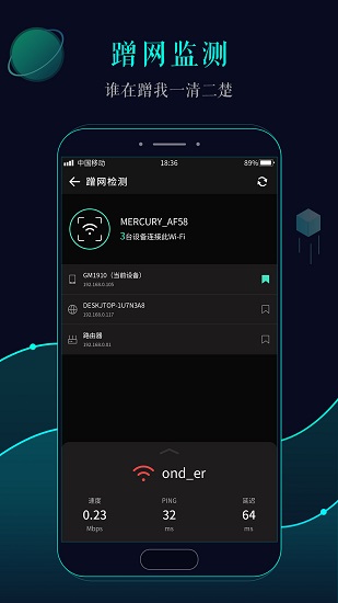 【WiFi安检】:搜寻同时在线设备,防蹭网;