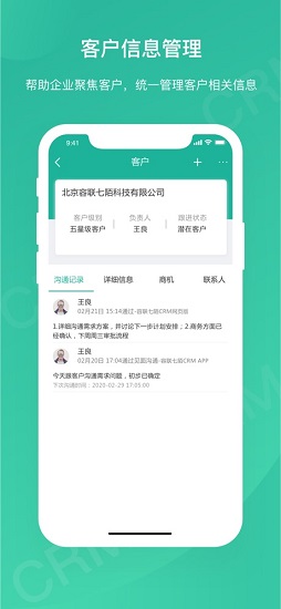 容联七陌CRM是一款企业办公的app,在这个软件里面,企业可以很好的管理客户资料,能够保存所有公司的客户信息,方便查看,不仅如此,平台还提供了办公服务,企业可以直接在进行办公,提高了效率,让你可以随时随地用手机办公,你还在等什么呢,快点来下载体验吧!
