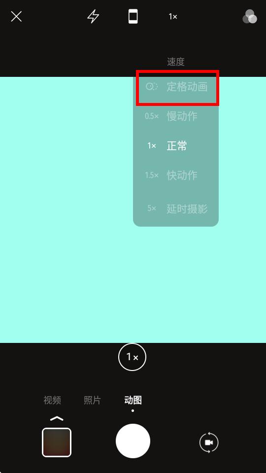 4、返回拍摄界面后,再次点击速度标识,从弹出的速度选项如0.5x慢动作、1.5x快动作等中,选择你想要的定格动画速度即可。