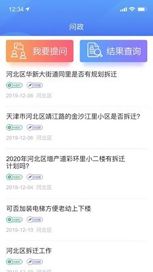 问政专区可以及时提问,提问结果可以随时查询