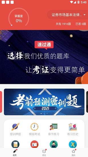速过通拥有各种热门资讯,各种考试计划、考试信息等都会及时给你进行推送,让你第一时间掌握最新信息,还有考前预测密训题,让你在考前多测试,快速提升你的学习成绩,还有更多模拟考试、章节练习、历史练习等功能,对于要考试的人来说,这款是一个值得推荐的学习刷题软件!