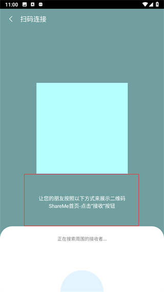 4、进入扫码连接页面后,让接收方展示对应二维码,扫描后即可完成软件的发送流程。
