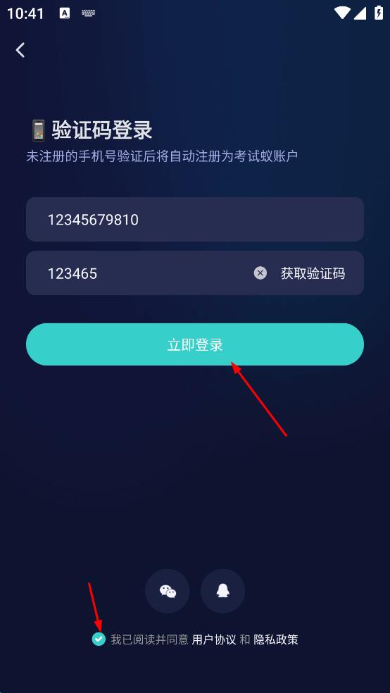 4、勾选“我已阅读并同意用户协议和隐私政策”,然后点击“立即登录”按钮。