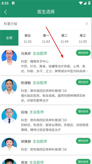 3、在医生选择页面,选择具体的医生。