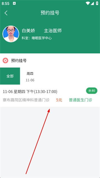 4、在预约挂号页面选择就诊日期和时段。