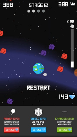 基本上每一颗行星都有一颗卫星,这颗卫星将保护行星的安全。这款游戏就是模拟这样的宇宙环境,操作卫星发射光球攻击,令行星免受来自宇宙里四面八方的陨石。操作简单容易上手,模拟宇宙陨石不断坠落的凶险环境!