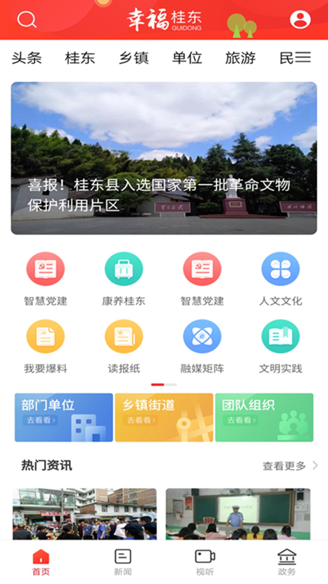 1、专为桂东县制作的融媒体移动平台,平台拥有新闻,视听,政务等等功能内容。