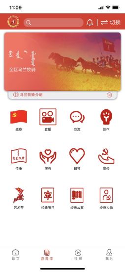 3、内蒙古广电网络点播平台“红色文艺轻骑兵——乌兰牧骑”专区进行展示