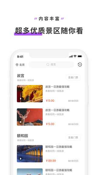 1、提供了非常丰富的旅游短视频,让你足不出户也可以了解到各地景点的详细介绍,而且旅行视频app还有专业导游在线讲解;