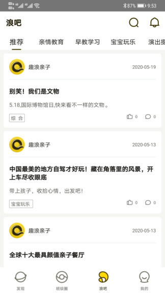 1、有很多的宝爸和爸妈都加入了让趣浪亲子app中,一起去探讨如何更好的去教育孩子,有专门的教育专家进行分享;