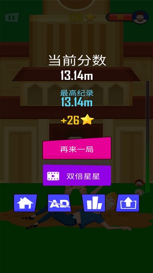 4、将主角抛得越高,分数就越多。不断挑战最高分,冲击排行榜。