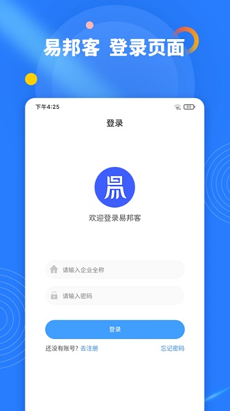 登录页面:企业名称,密码登录,注册以及忘记密码;