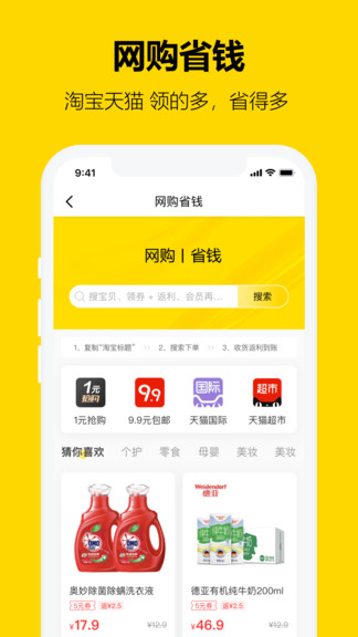 5、为你打造专业的省钱购物平台,用户购物先领优惠,购物更实惠;