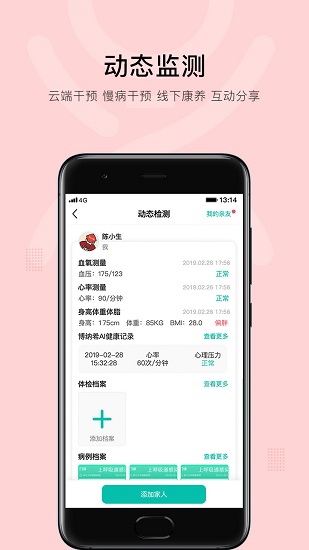 1、家庭健康档案管理,全家健康档案一个账号全管理,很方便;