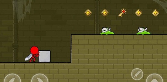 2、游戏中有一些小技巧还是要说一下的。在这个游戏里面蓝色的人可以通过红色的墙。