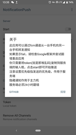 1、一台旧手机作为服务端,一台可以接收fcm推送的主力机。