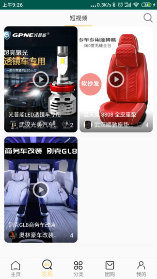 3、自动更新并推送短视频动态,通过网格形式进行展示,自行选择和全屏观看视频。