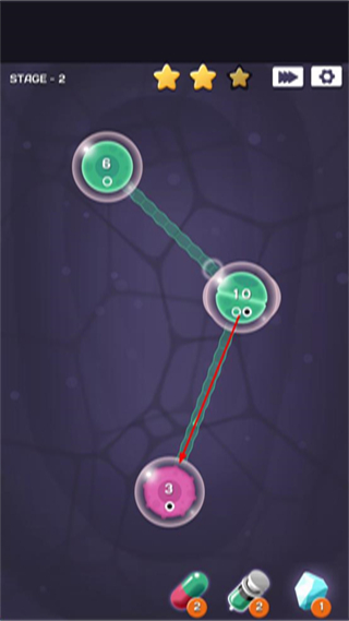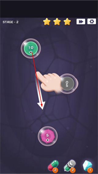 2、进入第2关,拖动对应细胞,让不同数值的细胞相互连接,推进合成进程。
