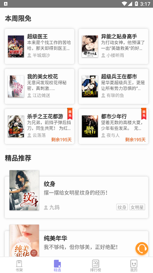 1、有排行榜,热销榜,收藏包点击榜,通过不同的区域去选择各种各样的好书。